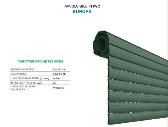 L'avvolgibile in PVC mod. Europa è realizzato con stecche auto-aggancianti, che